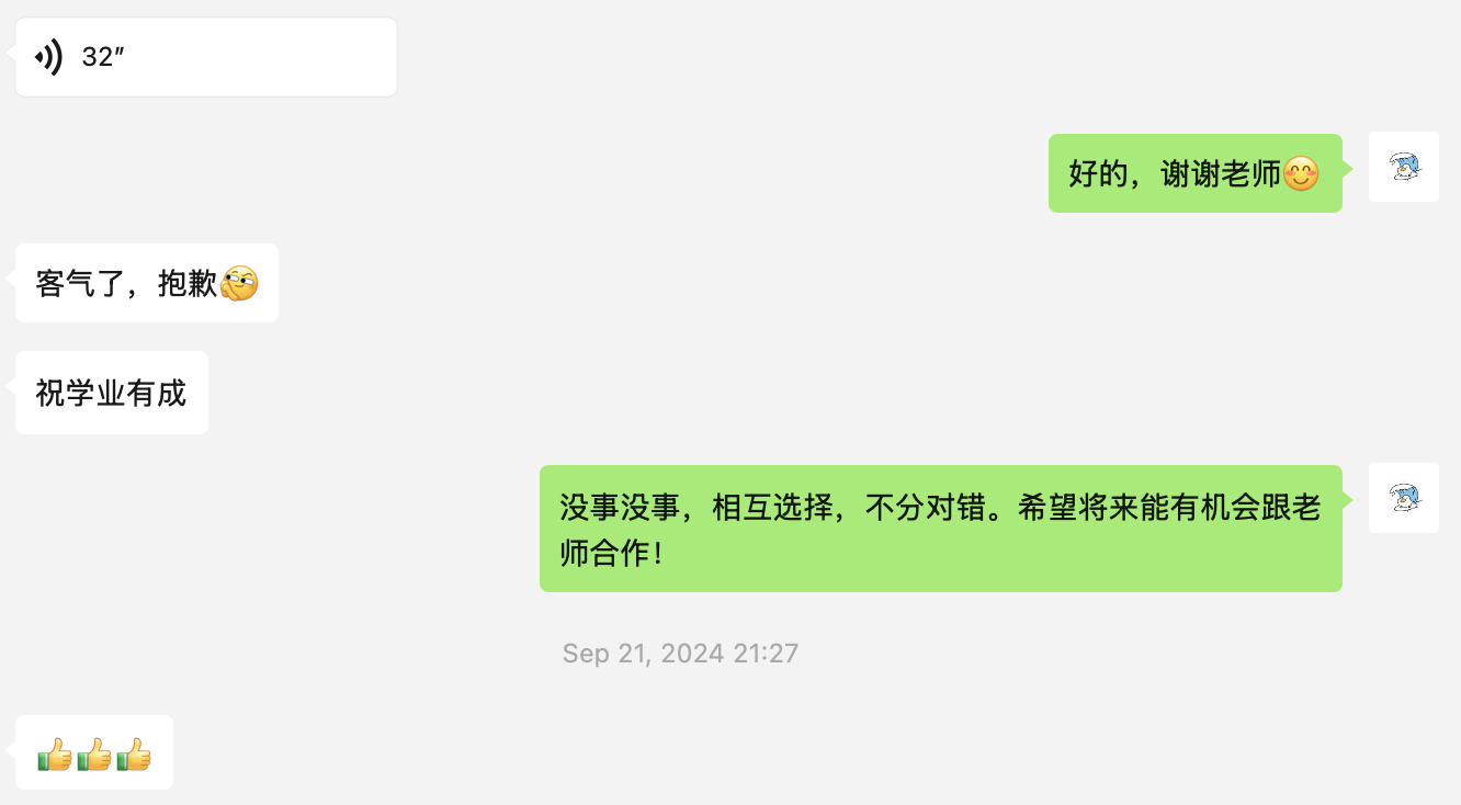 联系的王老师人也特别好。王老师是我夏令营的主面试官,后面拿到优营,也是第一时间给老师发去了邮件,老师看到后也是第一时间打电话过来确认,至此我有一个特别满意的保底院校。可是最后还是没能过去,挺对不起王老师的😭。